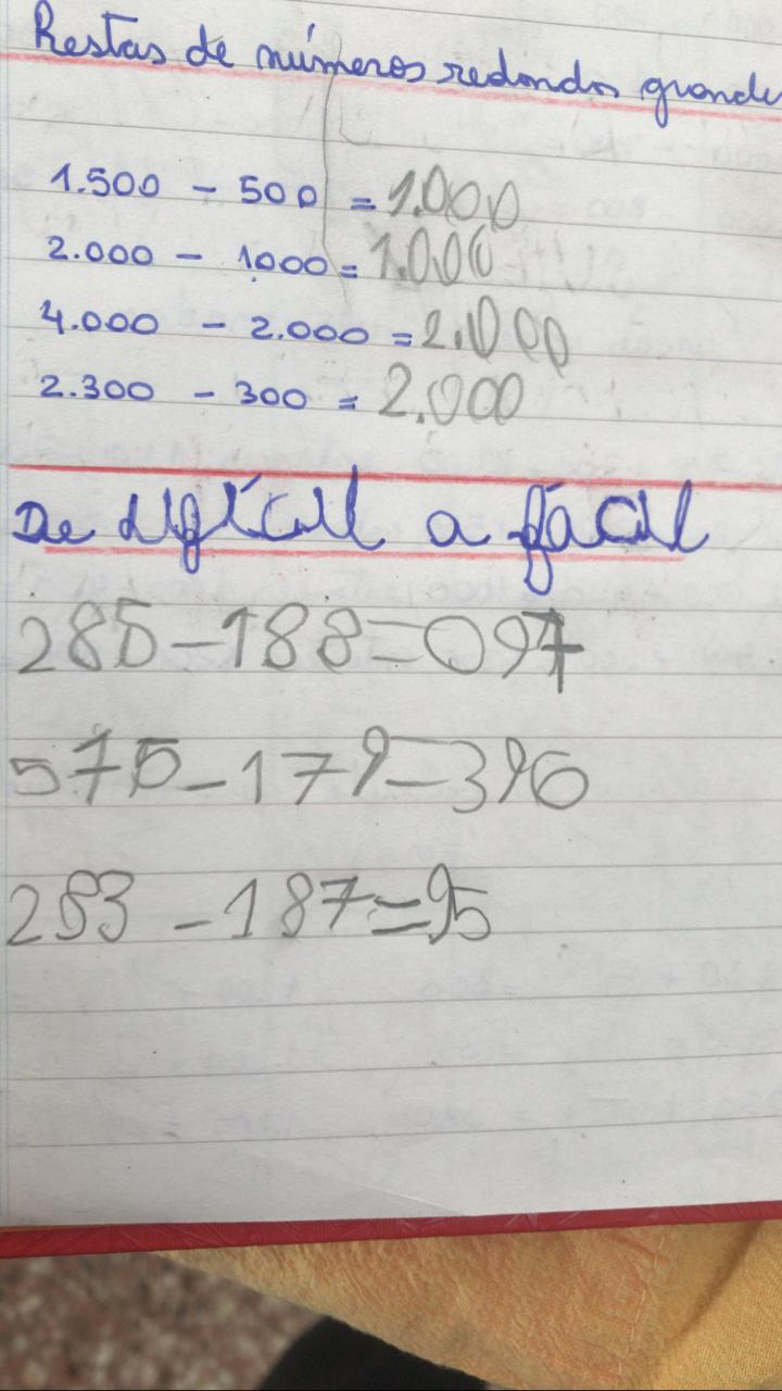 En el día de hoy, vamos a practicar un poco de resta con un método muy fácil y que nos ayuda a resolver mentalmente redondeando el número. O sea, una resta que a simple vista parece difícil, la convierto en una resta fácil.